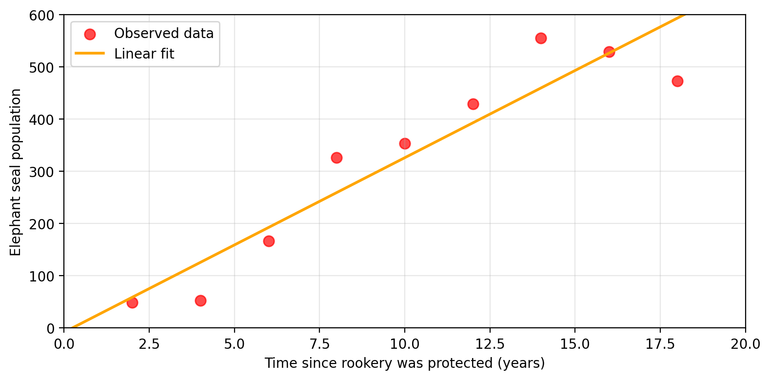 Amanda is a marine scientist investigating how protected areas affect elephant seal populations in California. She wants to understand: