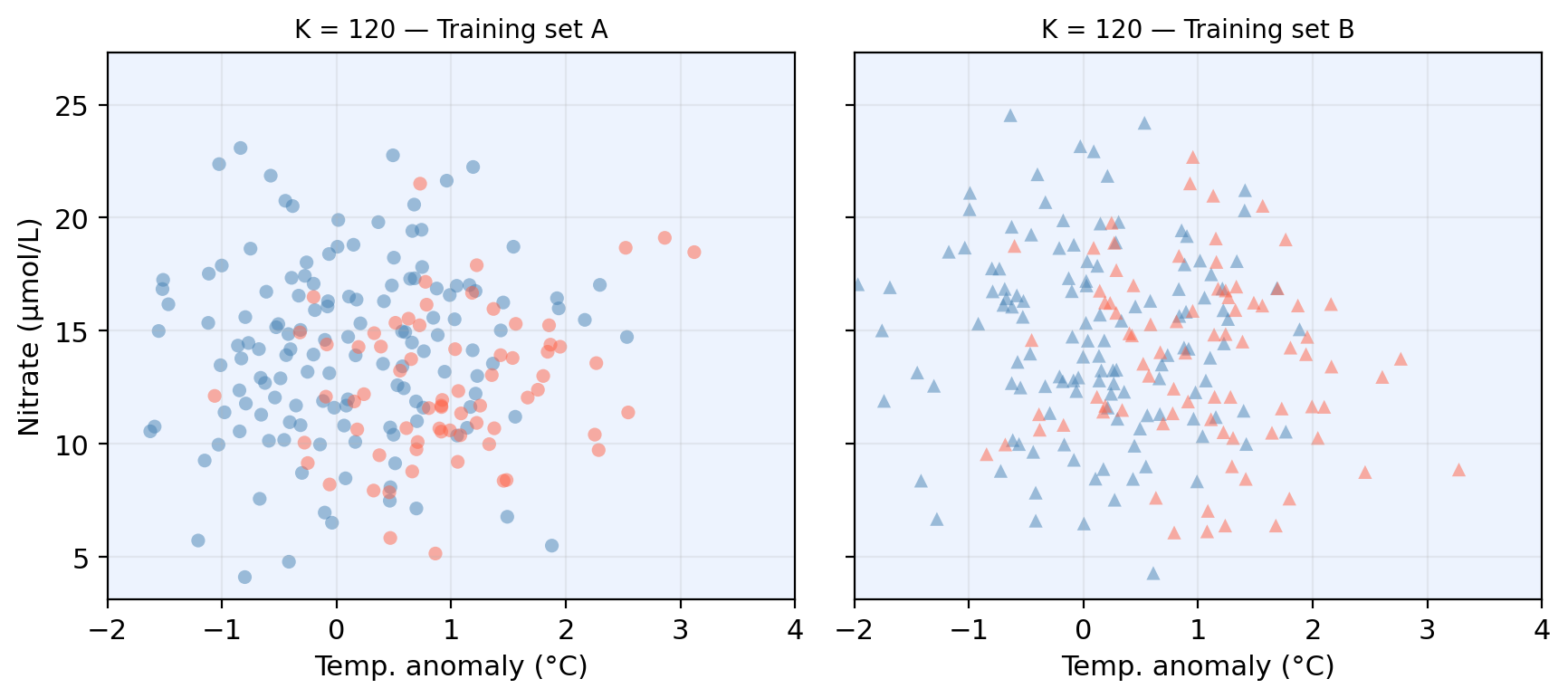 temp_anomaly— sea surface temperature anomaly (°C): deviation of ocean’s temperature from long-term averagenitrate— nitrate concentration (μmol/L)status— kelp forest condition: healthy or degraded